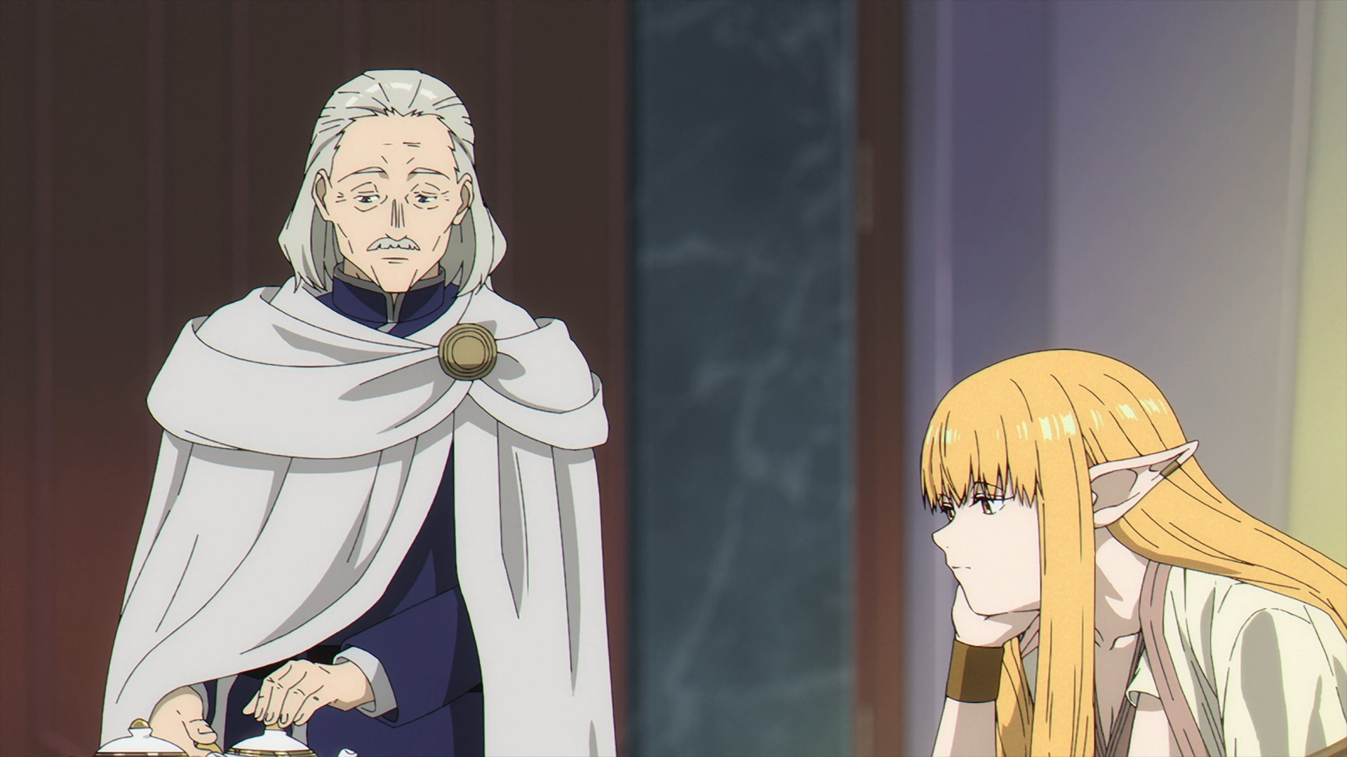 A bit of Lernen’s background gets fleshed out by Serie. He has been a First-Class Mage for over 50 years and it is to her regret, that he is still just as “timid’ as he was then. Serie gets up as a robe magically fits her like a Queen getting off her throne and concludes that due to his old age, it’s a shame that he may never be able to fight Frieren—even if he was able to defeat her. This makes Serie make the comment that “maybe she shouldn’t take on human apprentices anymore.”
