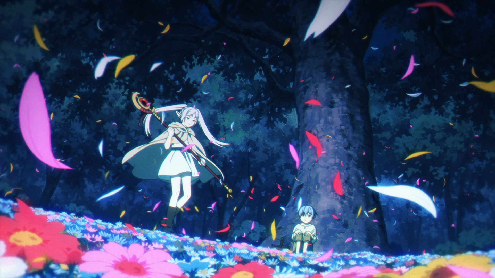 In Frieren’s way of encouragement after a semi-cold encounter with a young Himmel, Frieren uses Flamme’s and her favorite spell, creating a field of flowers. In the context of the time period, humans were only starting to use spells, as it has a negative connotation stemmed from the use of magic by demons. It is because of how beautiful these flowers were, that it ignited a positive imagination for magic in the young Himmel.
