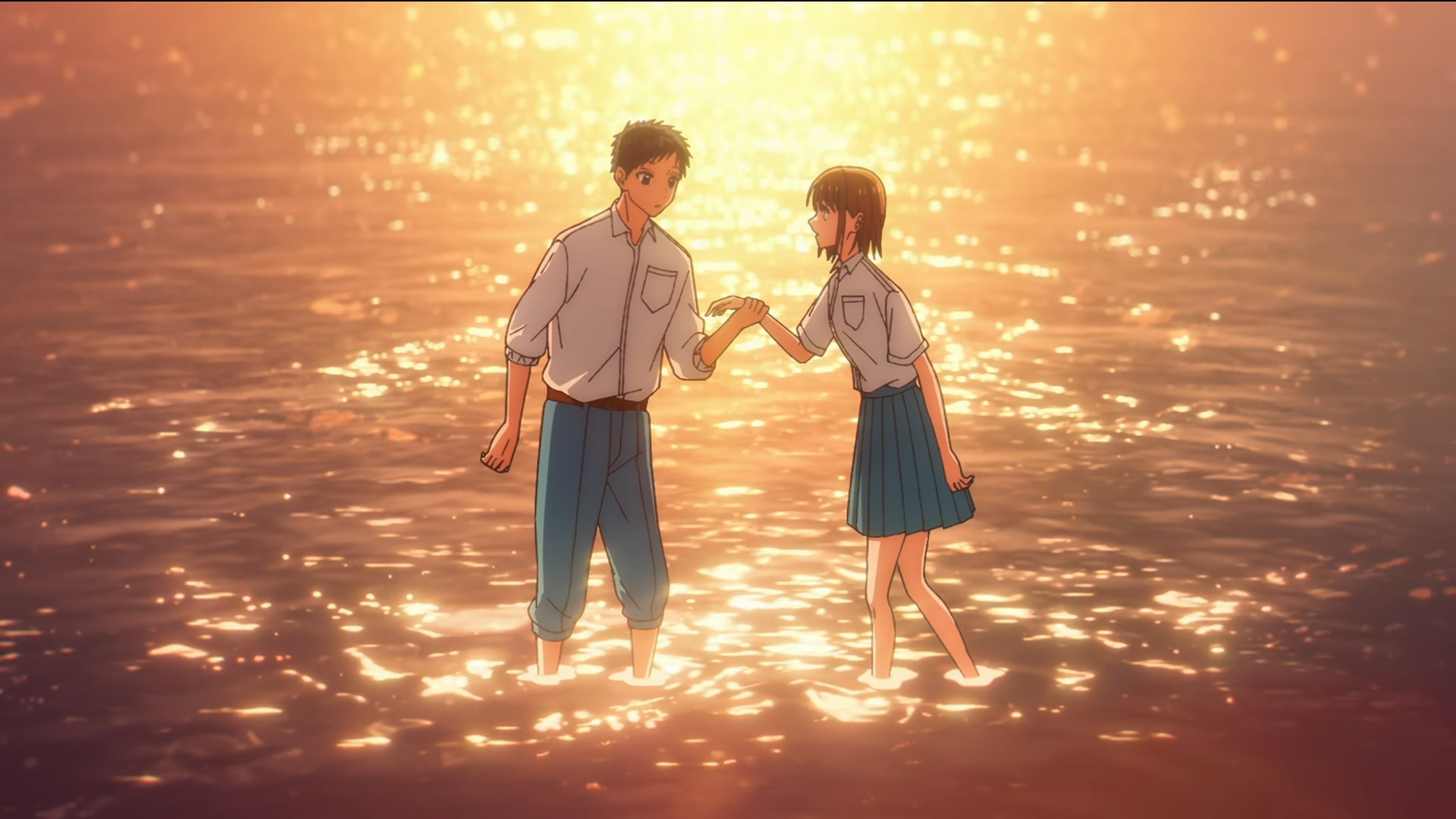 Maybe I should have used “X-Factor” to keep it with the sports theme, but every story has a “secret sauce” to it. What the secret sauce is to this story is exploring the nuances that happen within these romances and the harsh realities that can come from them. This episode is focused on the glorified, happy side of the beginnings of a romance—that is, Chinatsu and Taiki going on this “birthday date.” The story doesn’t outright say it’s a date, but it is one, just like how Taiki and Hina going to the festival in episode 12 was one. All the elements you would find endearing, attractive, and positive in a relationship are literally witnessed here with some cliché tropes between Taiki and Chinatsu. From getting wet and playful in the water, to having a dessert that Taiki somehow kept in perfect shape from before the train scene—all the way until the sun sets.