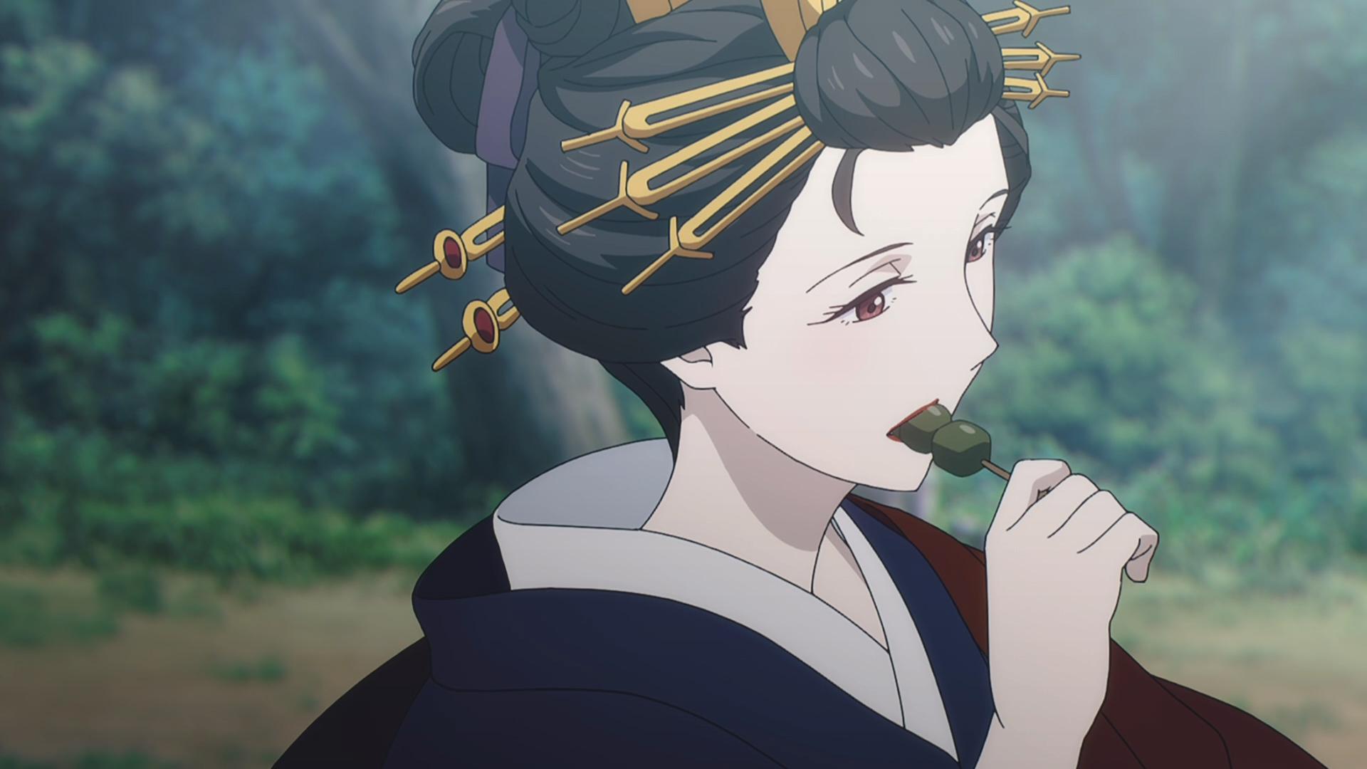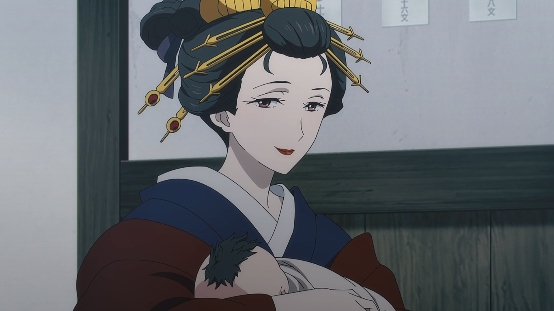 One of the best qualities about this episode is the mystery that holds your attention throughout. After defeating the “man-eating demon” at Mizuho Temple and assimilating it, Jinya ends up back at the Soba Shop to find an interesting turn of events.. We don’t know exactly why Jinya is experiencing an entirely new reality with a woman claiming she is his wife and that the baby she is carrying is his daughter.