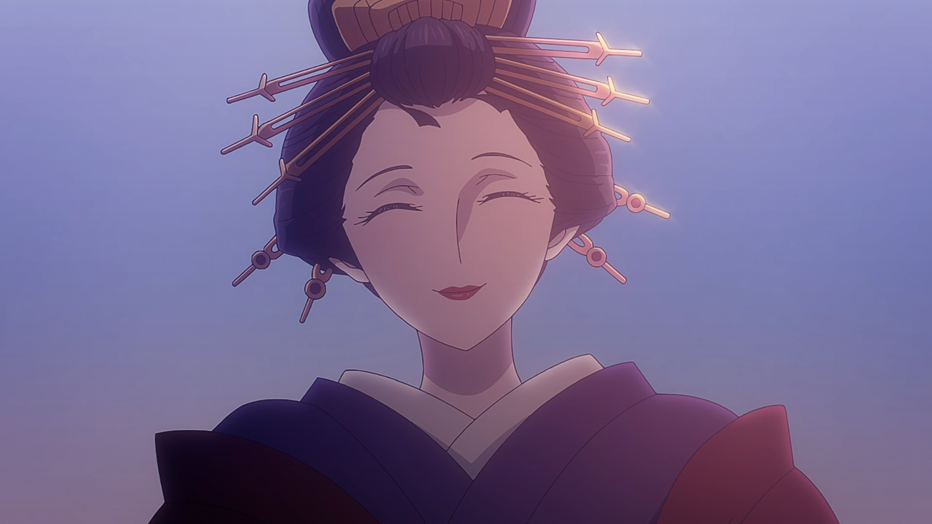 By the end of the episode it paints a clearer picture as to who the Amanojaku is and how she differs from the story. Yunagi is the Amanojaku that can lie unlike most demons. She played the role of the mother and protector at Mizuho Temple, rather than taking the place of the baby (the Urikohime). However, her disdain for the adoptive daughter is clearly a quality of the Amanojaku that feels the jealousy and some resentment over how special that baby’s life may end up being with the right caretaker. That caretaker? Jinya..