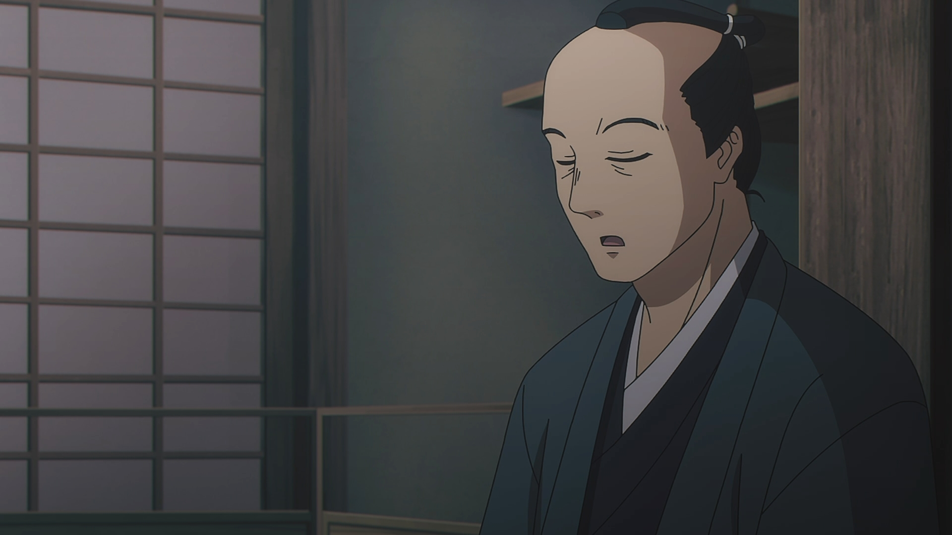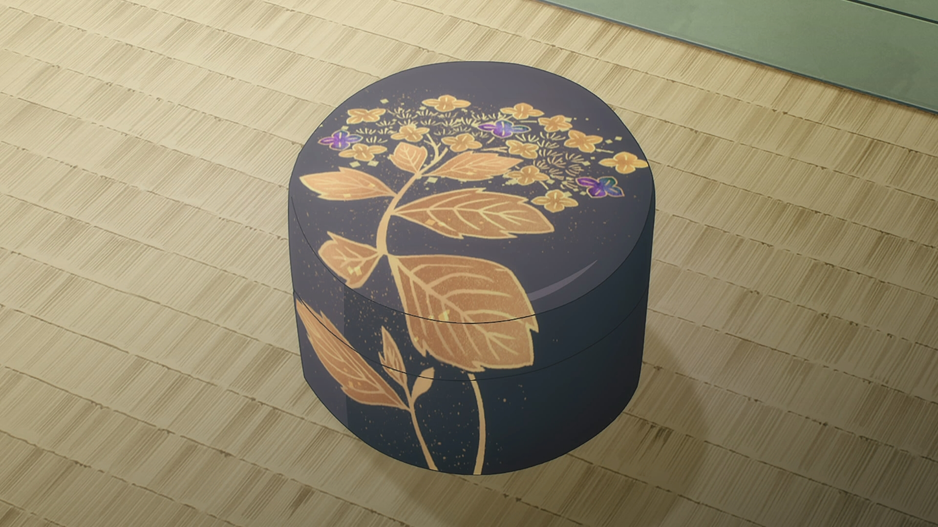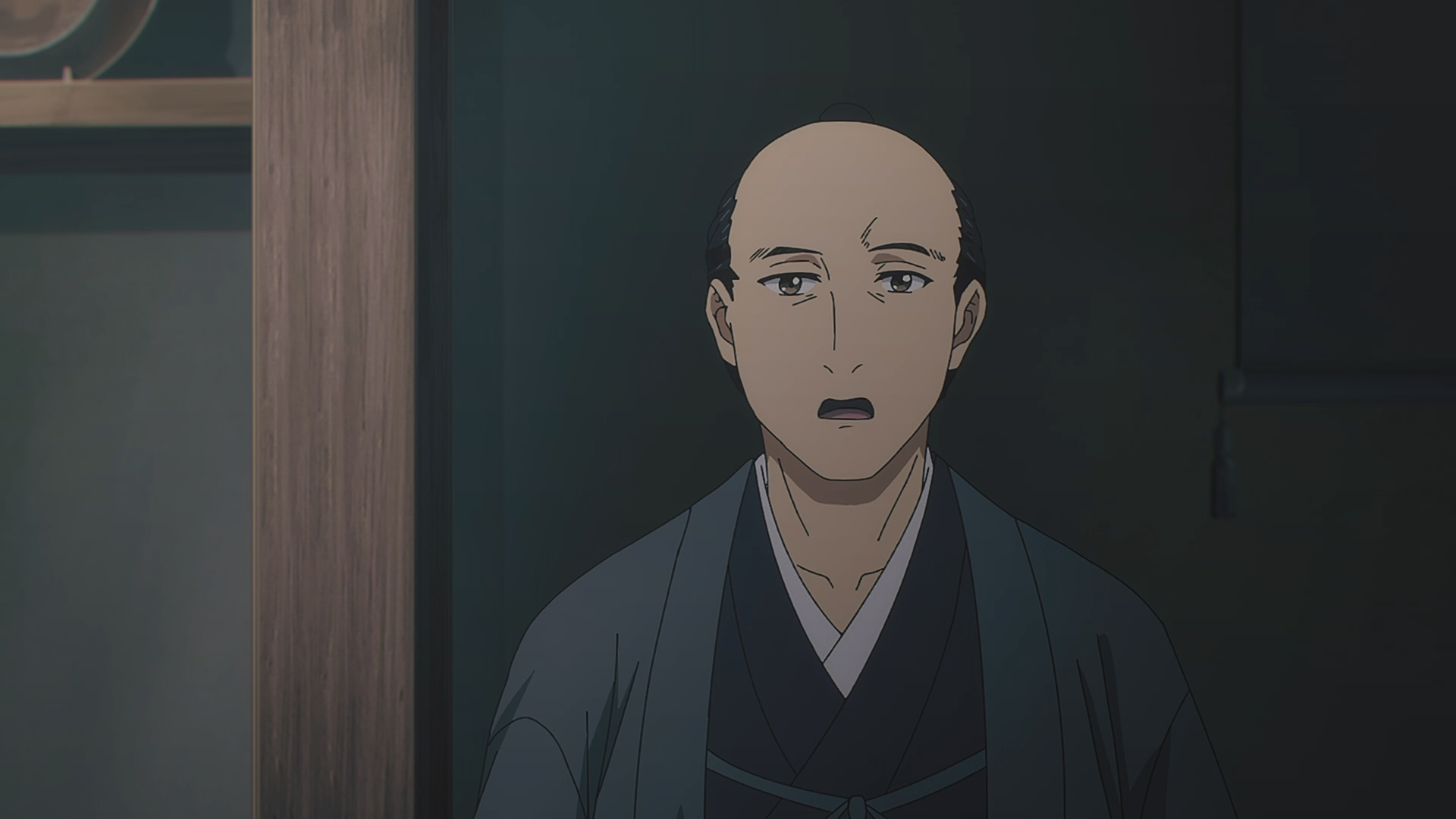 The spirit this time ends up being this “natsume tea-caddy.” Due to the design of it being of hydrangea flowers, people often associate it with “fickleness” or “treachery.” Depending on the soil it is grown in, hydrangea flowers can bloom into different varieties of styles and colors. The current episode takes place in Keio Year 3 (1867), which marks the last year before the Shogunate officially cedes its political powers back to the Emperor. This internal political turmoil is represented in the character Miura Naotsugu, who is a long-standing samurai.