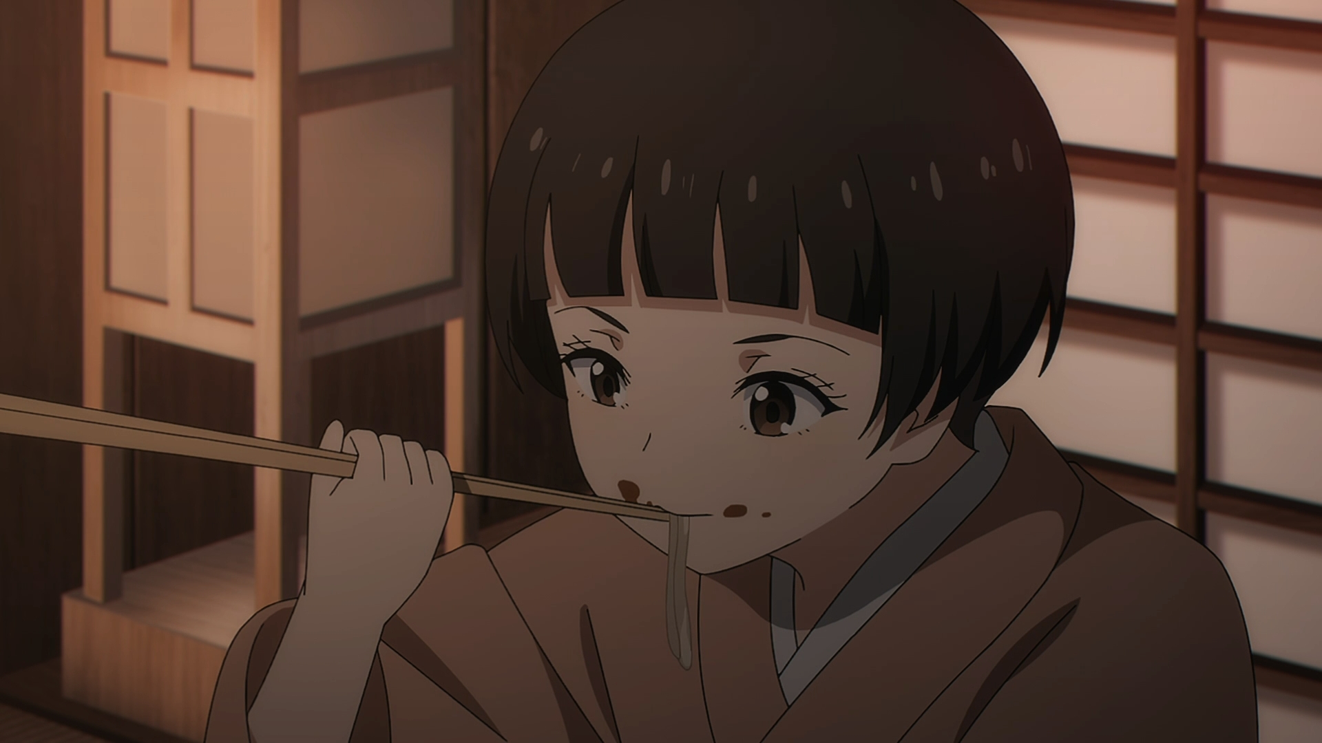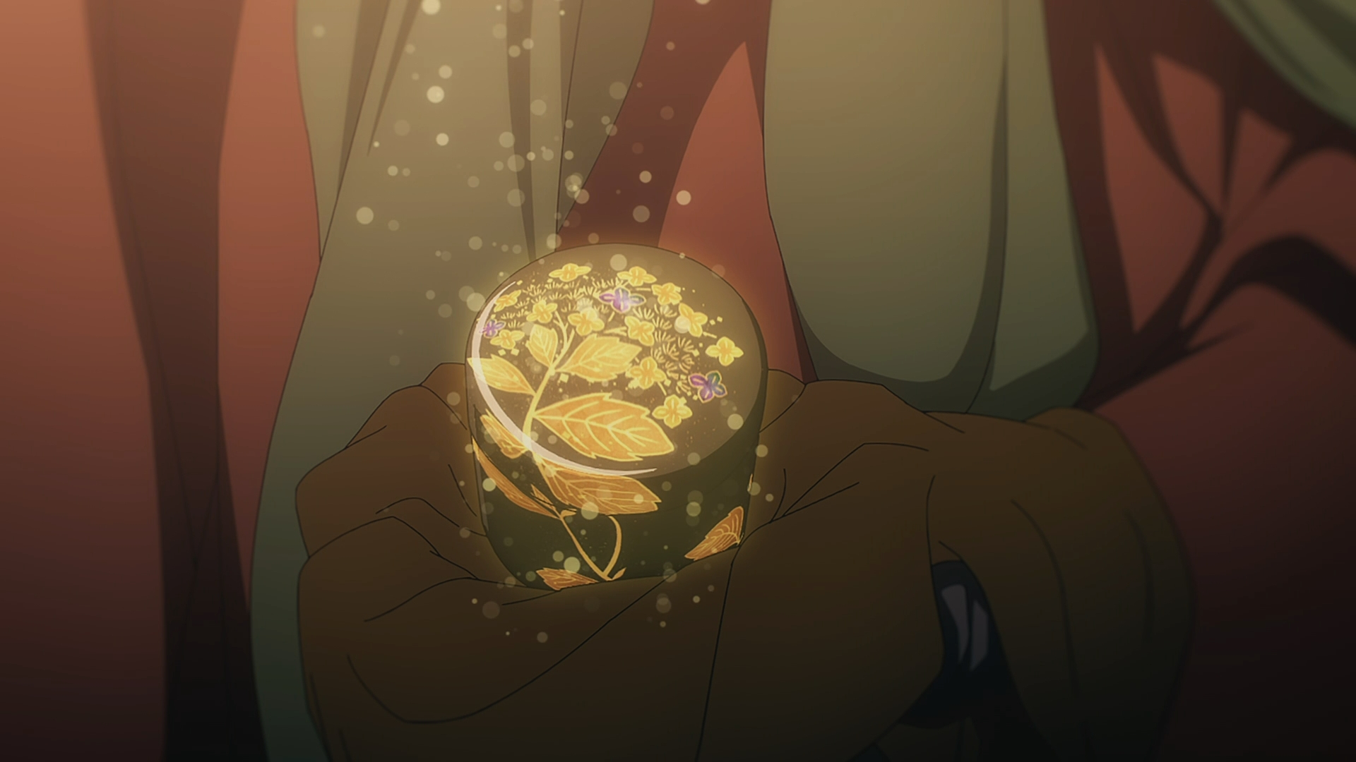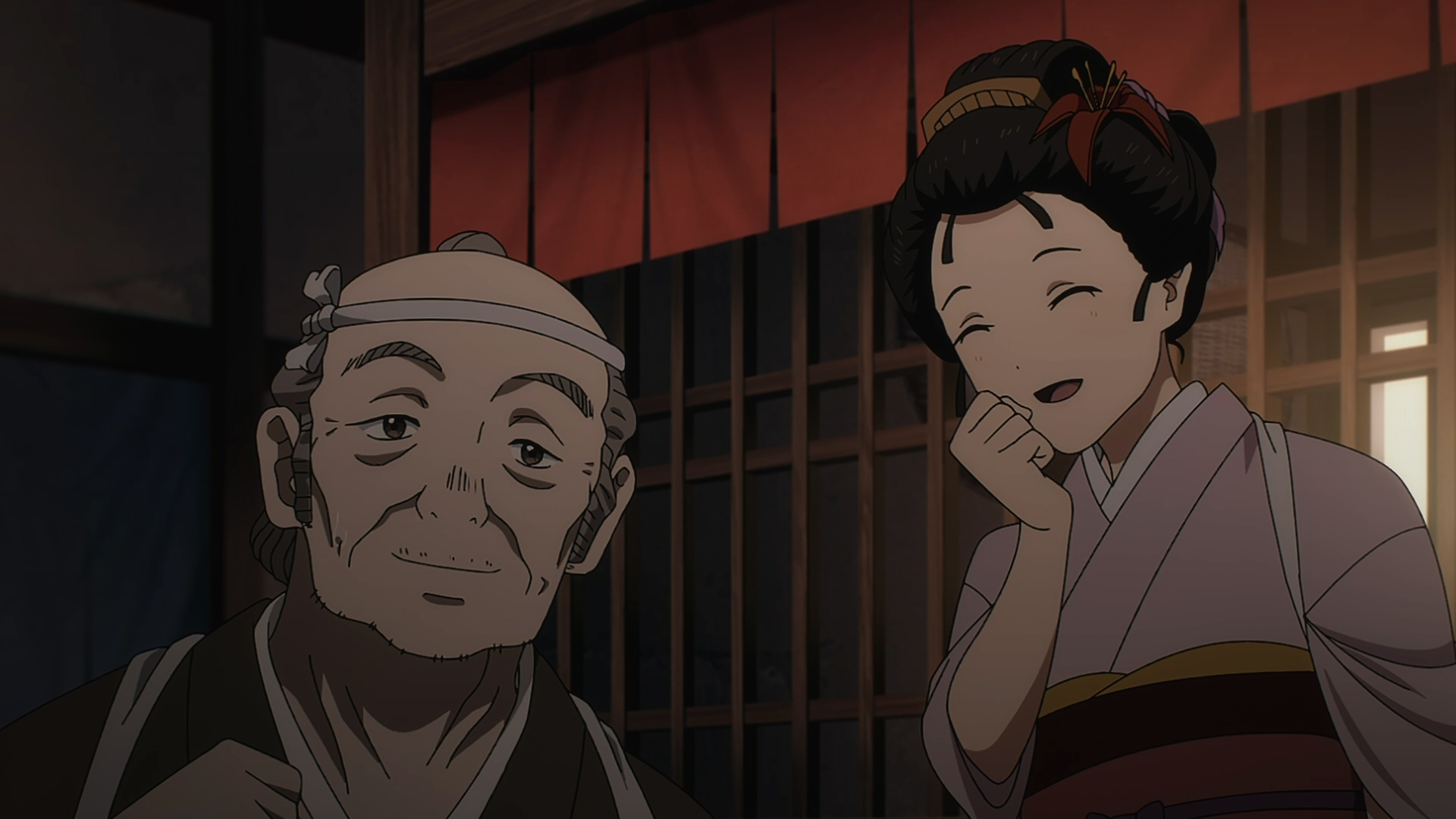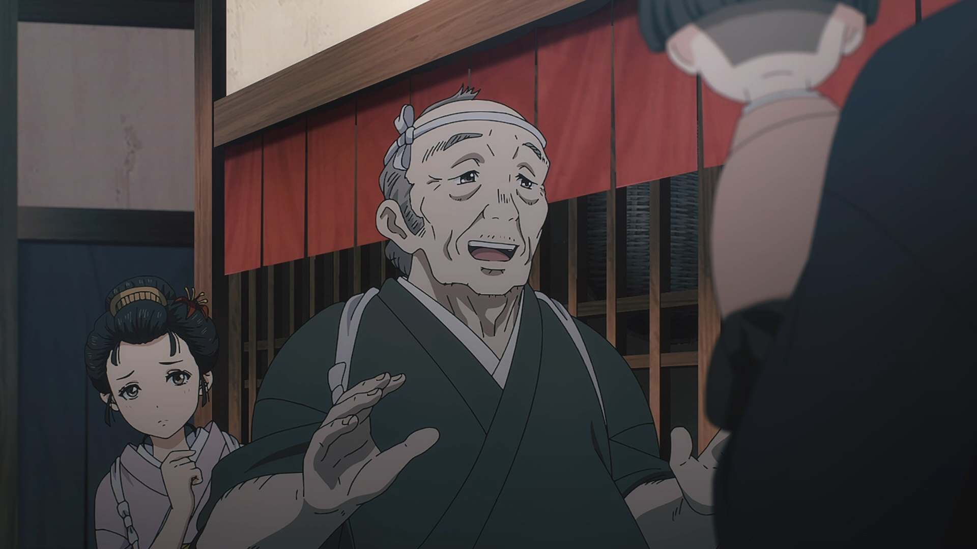 The spirit this time ends up being this “natsume tea-caddy.” Due to the design of it being of hydrangea flowers, people often associate it with “fickleness” or “treachery.” Depending on the soil it is grown in, hydrangea flowers can bloom into different varieties of styles and colors. The current episode takes place in Keio Year 3 (1867), which marks the last year before the Shogunate officially cedes its political powers back to the Emperor. This internal political turmoil is represented in the character Miura Naotsugu, who is a long-standing samurai.